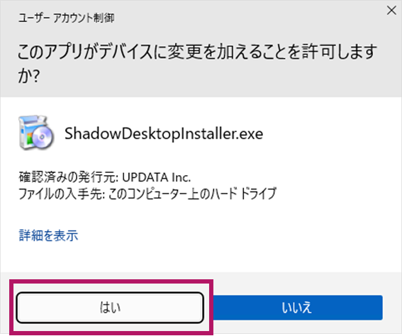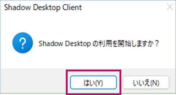 ①Shadow Desktopの利用を開始しますか?のダイアログで、「はい」をクリックします。