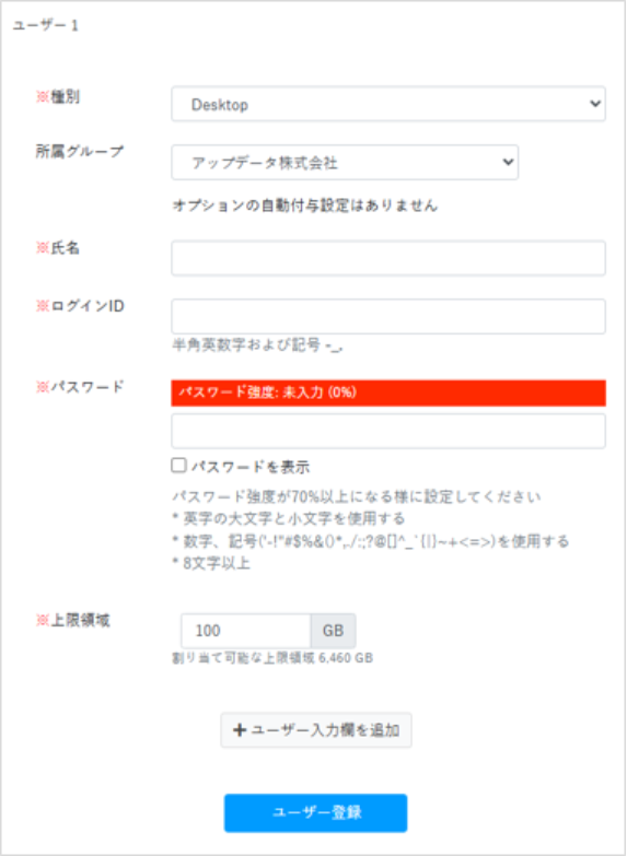 入力完了後、「ユーザー登録」をクリックしてください。