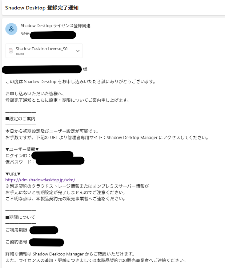(1)Shadow Desktopに登録されると、管理者様にメールが届きます。