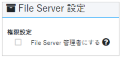※ (任意) ファイルサーバー管理者に設定する場合は、同タブの 「File Server 設定」で、「File Server 管理者にする」にチェックを入れます。