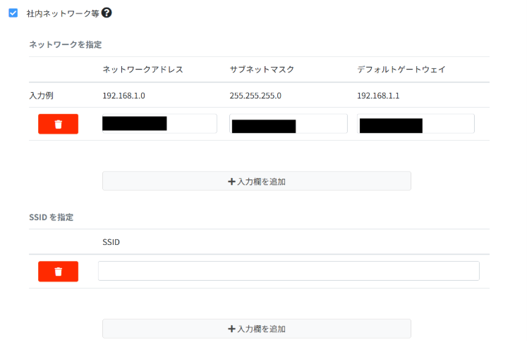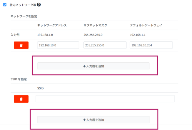 「入力欄を追加」をクリックし、ネットワークもしくはSSIDを指定します。