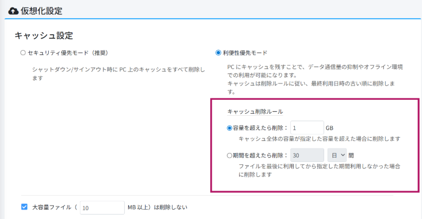 大容量ファイルの容量は貴社内のルールに則り入力してください。