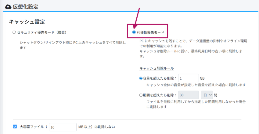(6)「大容量ファイルは削除しない」にチェックを入れます。