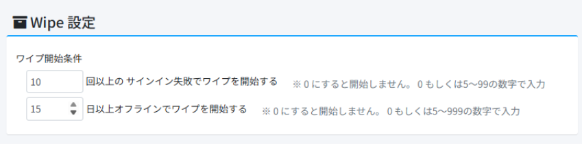 オフライン環境で規定日数以上経過すると、自動でワイプが実行されます。