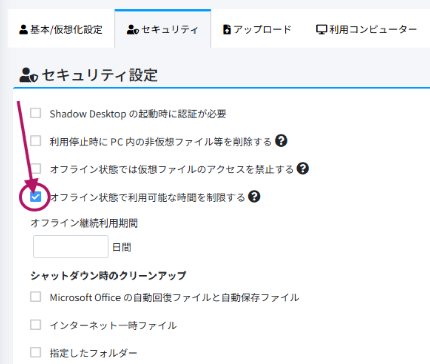 ※端末がシャットダウンしている期間も日数にカウントされます。長期休暇等を考慮し、10~14日程度の設定を推奨します。